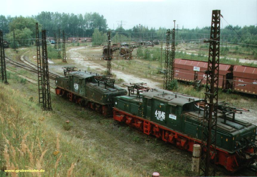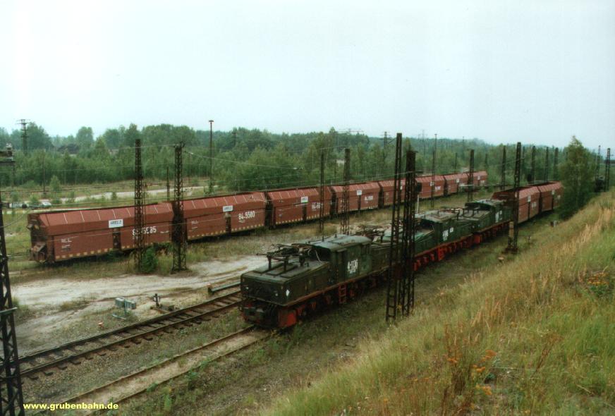 Bahnhof Stw 4 mit abgestellten Zügen in der ehem. Ausfahrt zum Tagebau Espenhain