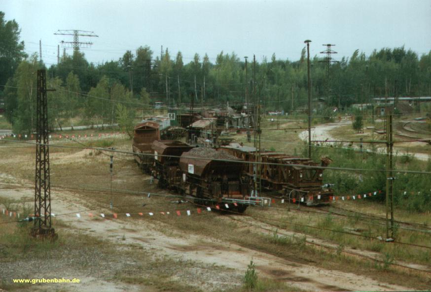 Abgestellte Feuerlose in Großzössen, die Brikettfabrik ist schon "plattgemacht".